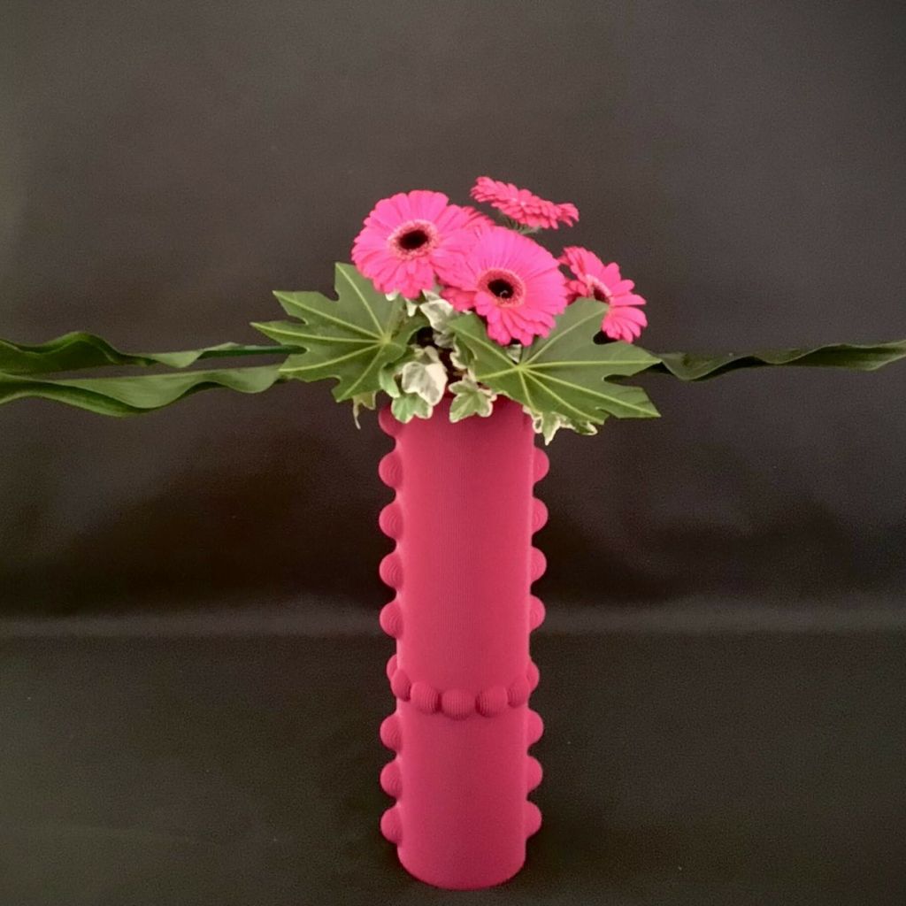 Bouquet moderne sur vase haut – ligne horizontale